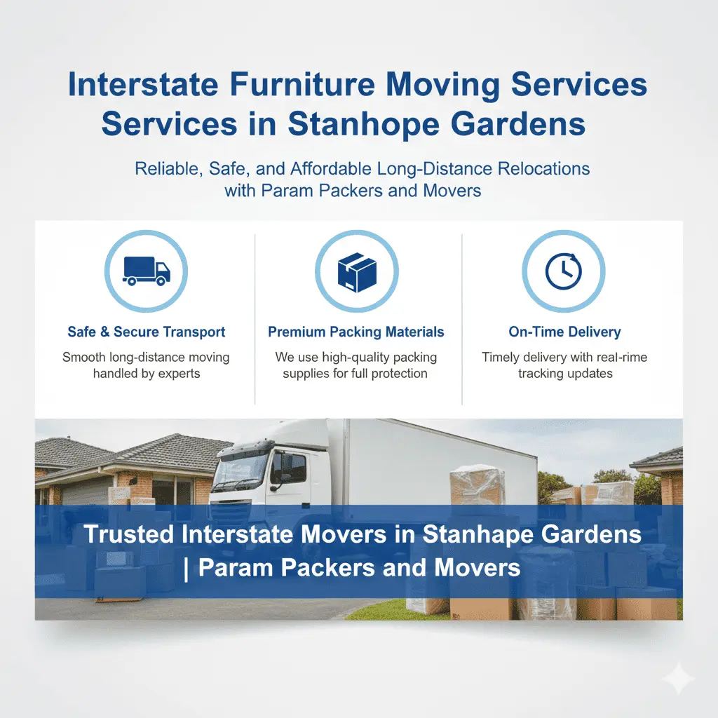 With years of expertise in providing safe and seamless relocations, Param Packers and Movers proudly offers dependable interstate furniture moving services to and from Stanhope Gardens. Our experienced team handles every stage of your relocation with precision, dedication, and care — ensuring a smooth, organised, and completely stress-free experience from start to finish.